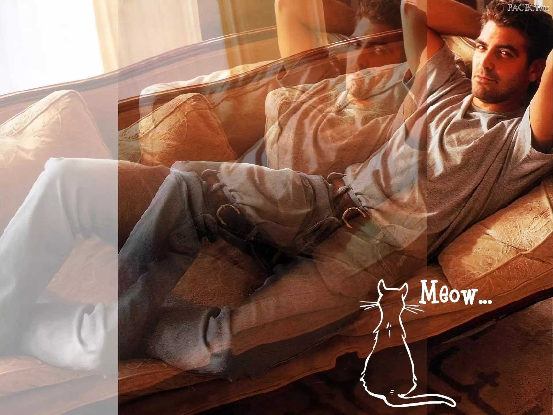 jeansy, George Clooney, szara koszulka George Clooney, Aktor kurtka, George Clooney, czarna koszulka motyl, George Clooney, fotel George Clooney welon, George Clooney, krawat twarz, George Clooney wąsy, George Clooney, broda George Clooney, skórzana kurtka nogi, George Clooney, muszka Strój, Grochy, George Clooney, Tło brązowe spodnie, George Clooney, skok uśmiech, George Clooney, czarna bluza brązowe oczy, George Clooney, siwe włosy